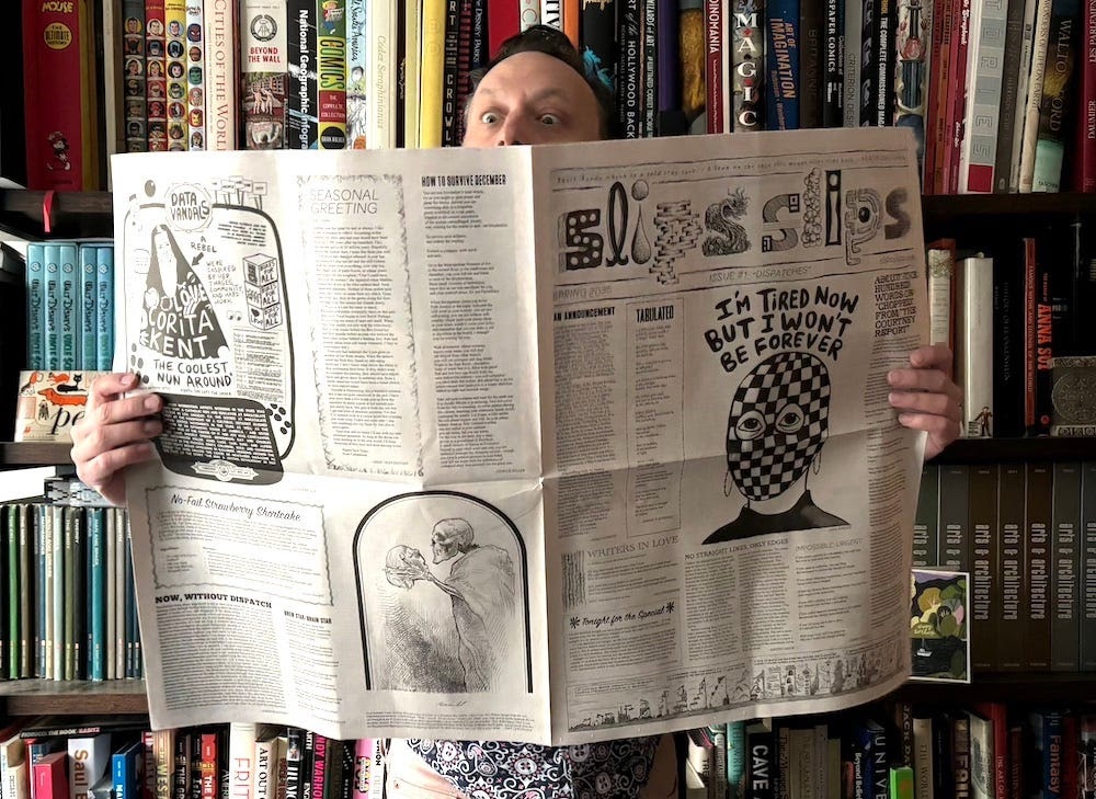 They are slow-drip releasing Q&A quickie profiles of slips slips contributors , and today is my day. You can read the profile now here. And you can arrange to get your own hard copy of slips slips here.
